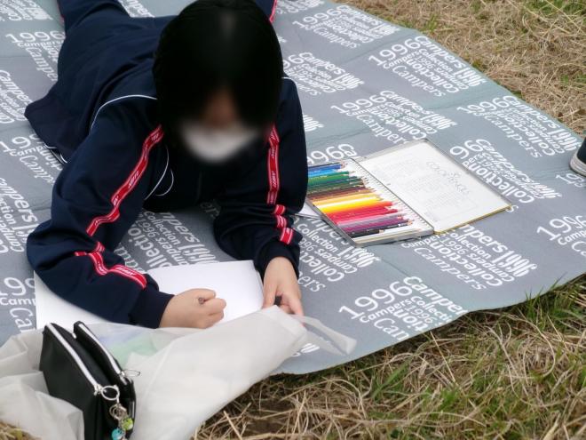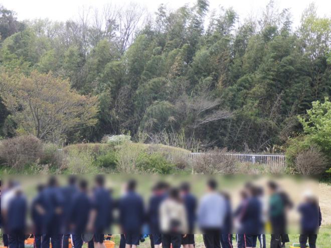 風が強めでしたが、まだ桜が満開の中、歩いて遊水池公園に行きました。学校の近くには、みどり豊かなでこんなに良い場所があります。新学期を迎え、学年全体の親睦を深めるのがねらいです。