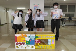 今年度も「届けよう 服のチカラ」プロジェクトに参加しました。使っていないこども服を難民キャンプへ送る取り組みで、6月にユニクロ港南台バーズ店さんから講師をお招きし、難民問題について講義を受けました。7~8月に古着の回収BOXを2つ作成し、9~11月に学校とユニクロ港南台バーズ店さんにも協力していただき回収BOXを設置しました。たくさんの古着が集まり、難民キャンプへ送ることができました。通る人の目に留まるように工夫して回収箱を作ったので、たくさん古着が集まり、生徒たちは喜んでいました。