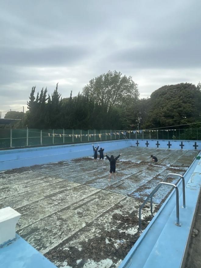 そして遂に、プール掃除が始まりました!!まだまだ汚れていますが、綺麗な水で泳げるようみんなで頑張っています!