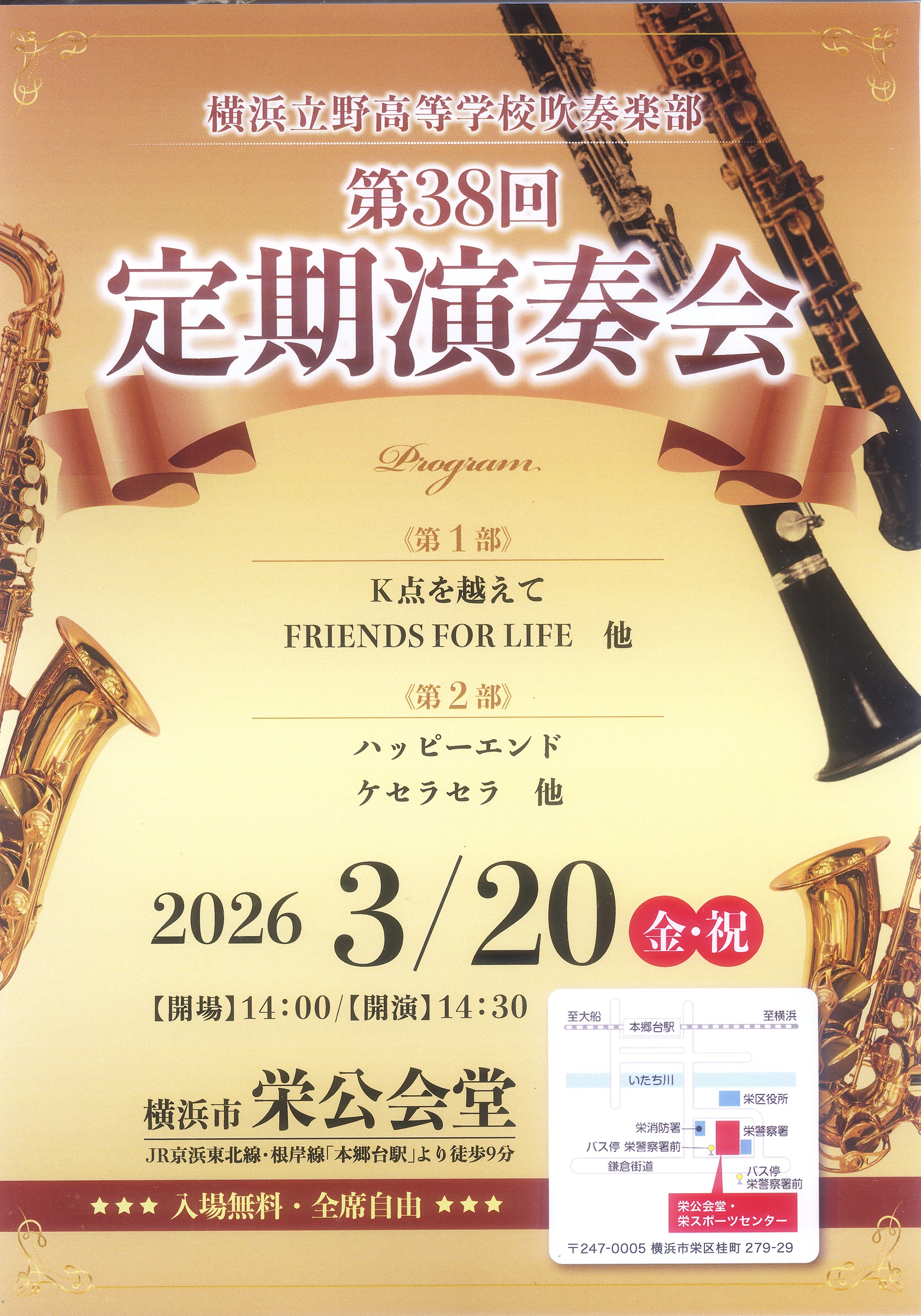 ・横浜吹奏楽コンクールB編成の部 銀賞(昨年) ・定期演奏会演奏