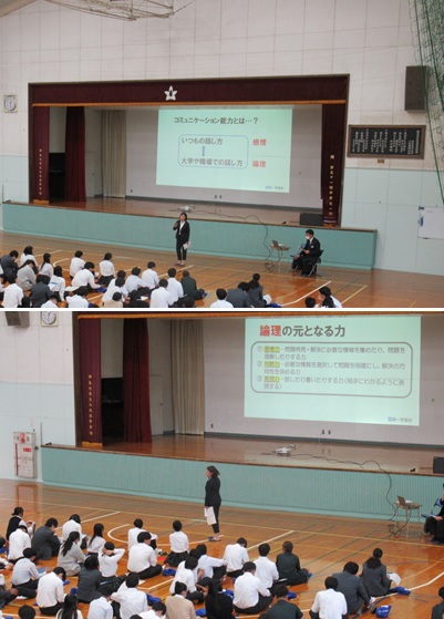 「オシエルズ」のお二人には、講演終了後も生徒の対応をしてくださいました。具体的な進路指導はまだまだこれからという状況ですが、今のうちから中長期的な視野を養ってほしいと考えています。