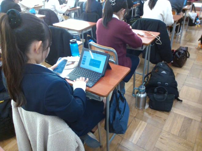 1月27日(月曜日)の総合的な探究の時間では、最終発表に向けたリハーサルを実施しました。最終発表に向け、各クラス内で相互発表することで、改善点を洗い出し、修正を図りました。