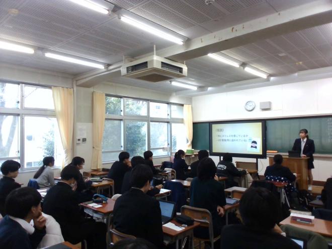3月17日(月曜日)の総合的な探究の時間では、代表生徒・グループによる最終発表会を行いました。2月に実施した合同発表会での発表における生徒・教員による評価を踏まえ代表者を選出し、全校生徒の前で発表を行うことで、次年度以降の探究活動に対する取り組みの参考としてもらいました。また、当日は産業能率大学の教授にもご来校いただき、発表に対する講評および講演会を行い、探究活動の重要性などを改めて認識する時間となりました。