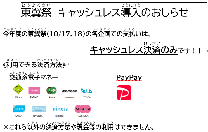 さて、本校では、次の通り東翼祭を開催いたしますのでお知らせいたします。