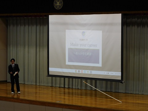 令和7年4月9日(水曜日)、対面式を行いました。生徒会が製作した学校の施設紹介や、行事の紹介動画を見たり、今年度の南翔祭のテーマ発表をしたりしました。新入生の皆さんは少しでも大和南高校のことを知ることができましたか。上級生の皆さんは新入生が何かわからなくて困っていたら、ぜひ手を差し伸べてあげてください。