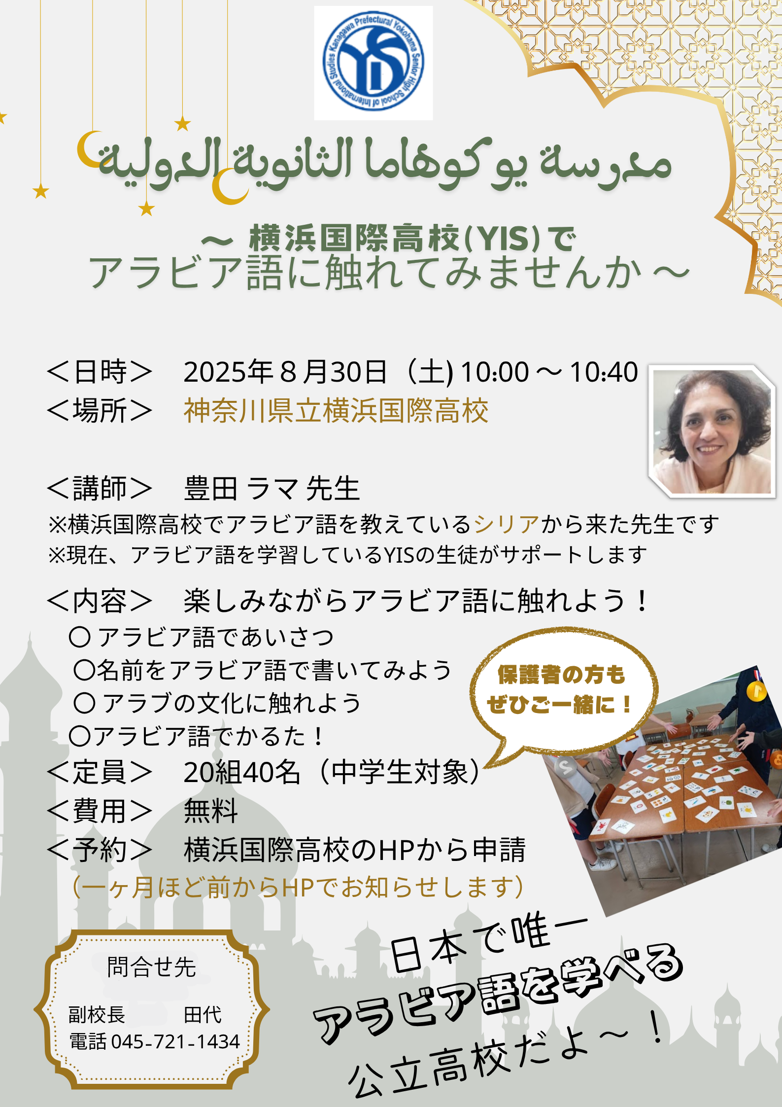 横浜国際高等学校 > 学校説明会・英語スピーチコンテスト等について > アラビア語体験授業について