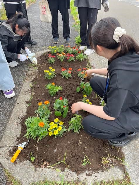 5月10日(土曜日)第8回フラワーロードプロジェクトが開催されました。雨のため急遽午後に時間変更となりましたが、本校からは1年生47人、2年生41人、3年生35人、未来共創ラボの生徒17人、合計140人の生徒が参加しました。
