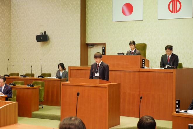 11月18日(土曜日)愛川町こども議会が、開かれました。本校生徒2名と愛川町の小学生・中学生が参加し、実際の町議会が開催される議場で、傍聴人の方がいる中、それぞれが考え提案した議事に対し町長さんを始めとした役場の関係部署の長の方々が回答する、という本格的なものでした。