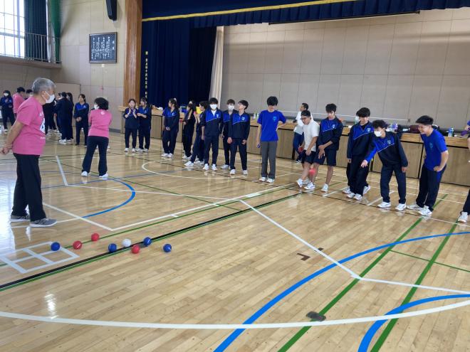 10月4日(金曜日)、学年行事として3学年はレクリエーション大会を実施しました。競技はパラスポーツの「ボッチャ」・「ゴールボール」、ニュースポーツの「モルック」です。生徒たちは事前学習をして理解を深めた上で、当日はボッチャの講師として「神奈川県ボッチャ協会」、モルックの講師として「愛川町レクリエーション協会」の皆さまにご来校いただき、分かりやすくレクチャーをしていただきました。