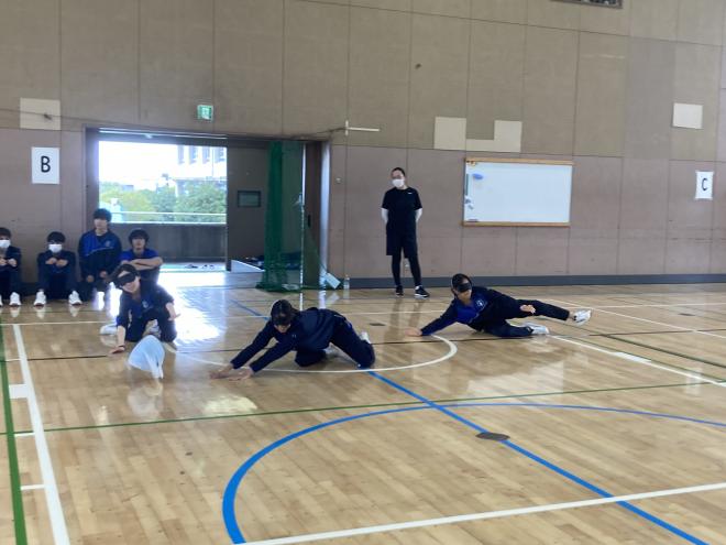 パラスポーツ「ゴールボール」:視覚障害者独自の競技です。今回はアイマスクをつけてプレーしました。