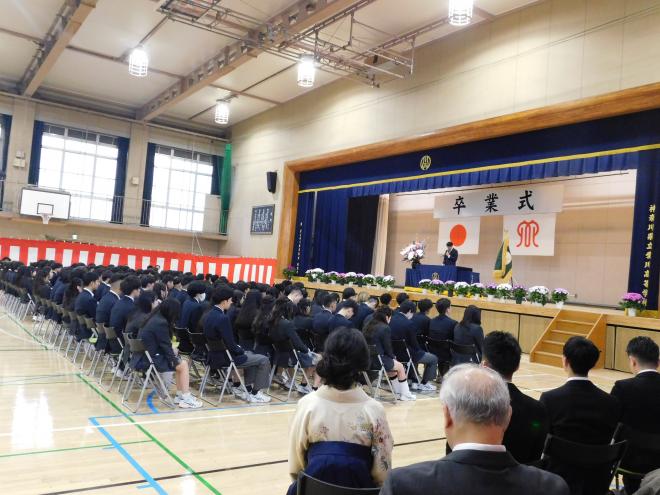 3月3日(月曜日)に第40回卒業式が行われました。とても厳粛で、卒業生の成長がうかがえる式典でした。空模様は別れを惜しむような雨でしたが、40期生達の顔は晴れ晴れとしており、温かな雰囲気に満たされていました。愛川高校での経験を活かし、未来へ向けて羽ばたいてください。