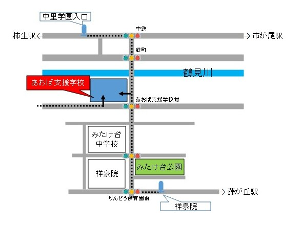東急バス(青27)市が尾駅行「中里学園入口」下車徒歩10分(6番のりば)