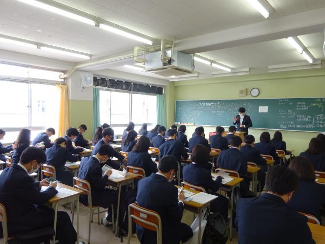 今年度も新型コロナウイルス感染症対策のため、各家庭保護者1名の参列を頂いての式典となりましたが、大きな握手に迎えられ、これから始まる高校生活への、期待に満ち溢れた素晴らしい入学式となりました。