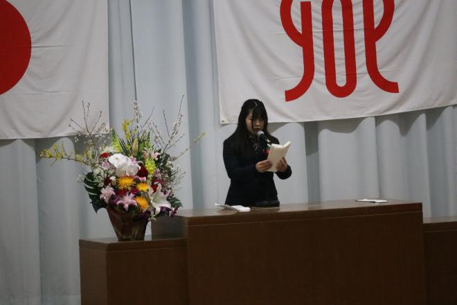 | 卒業生代表の言葉 | 校歌斉唱・合唱「旅立ちの日に」 | |