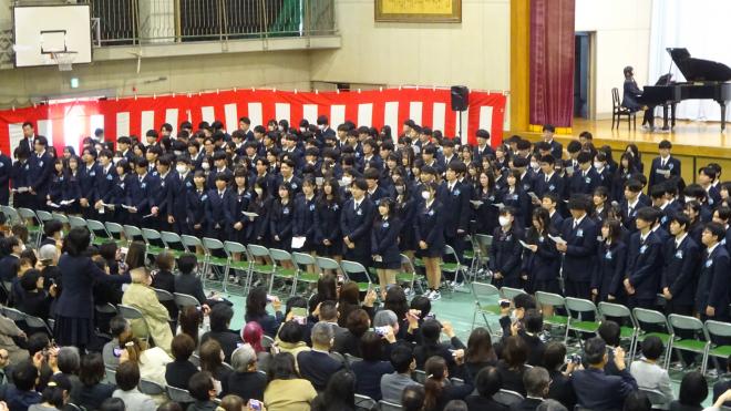 3月1日(金曜日)に第38回卒業式が行われました。多くの保護者の方々にご出席頂き、温かな雰囲気の中で38期生の門出の日を迎えることができました。また式典後には、卒業生有志が作成した思い出のスライド鑑賞、そして「旅立ちの日に」を合唱し、この3年間を振り返りました。