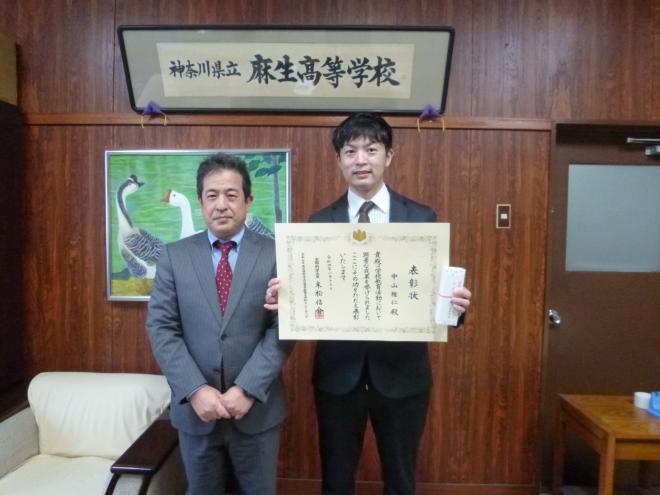 受賞した中山雅仁教諭(右)と加藤俊志校長(左)