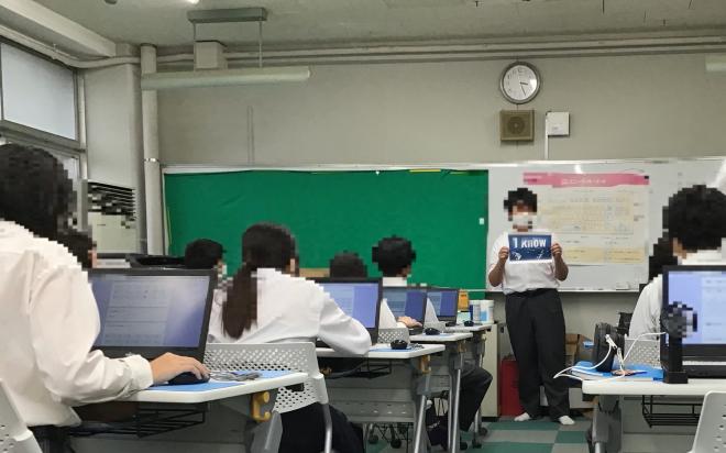 情報社会との関わりについて考えながら、問題の発見・解決に向けて主体的に情報と情報技術を活用し、望ましい情報社会の構築に寄与します。産業社会と人間で学んだコミュニケーション術を活用しながら、発表をしています。