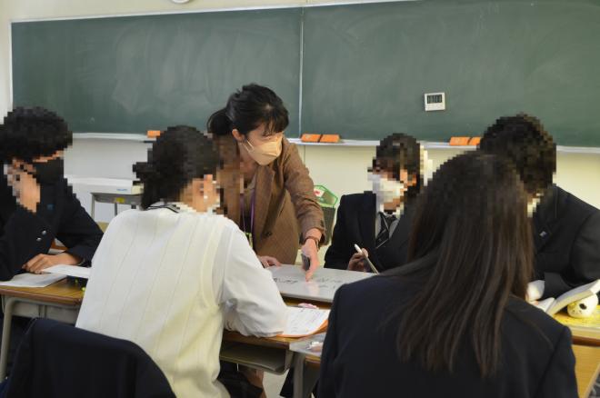 [左の写真] 外国人に人気の観光スポットをグループで調べ、発表しました。