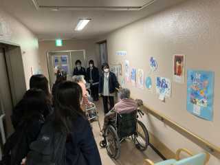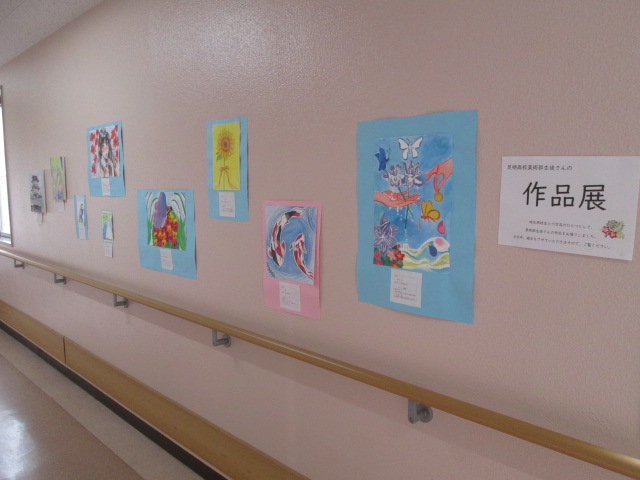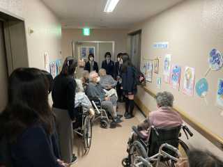 11月19日美術部活動日の放課後に、部員(2年)6名と顧問2名で、「特別養護老人ホーム 草の家」さんを訪問しました。草の家さんからお話をいただき、本年度より草の家さんと美術部部員は、制作した作品を通して交流を行ってきました。すでに施設では部員達の作品の展示が行われています。