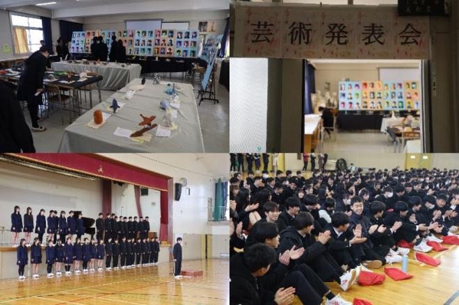 3月に芸術科の授業の総まとめとして、音楽クラスは合唱披露を、美術クラスは美術作品展示を行います。