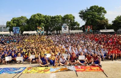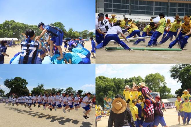 当日は好天に恵まれ、各学年が赤、青、黄、白の4つの連合に分かれ熱い戦いが繰り広げられました。