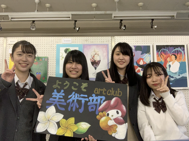 活動場所、美術室です。活動内容は、文化祭や県の美術展、コンクールに向けての作品制作です。