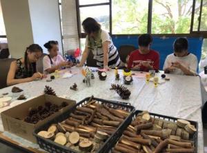 七沢森林公園協力のもと、公園内にある自然の素材を使って西高オリジナルマスコットとキーホルダー作りを開催しました。