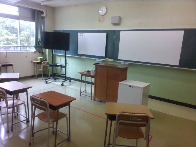 各教室にプロジェクターとスクールタイマーを設置しています。これら以外にも、大型モニターや実物投影機を使用して、全ての生徒にとってわかりやすい授業の充実に努めています。