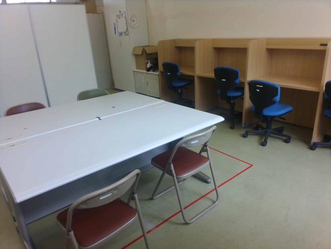 各学年に1つずつ設けています。主にキャリア科目の授業で使用しています。授業の間の休み時間や昼休みに休憩をしたり、昼食をとったりする生徒もいます。また、試験前に補習で使用する生徒もいます。