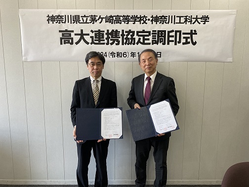 令和6年12月4日に神奈川工科大学と高大連携教育に関する協定を結びました。為成校長は「連携を活用して、社会に出てから活躍できる人材を育成できるよう、教育活動を充実させていきます。」と連携への期待を述べました。