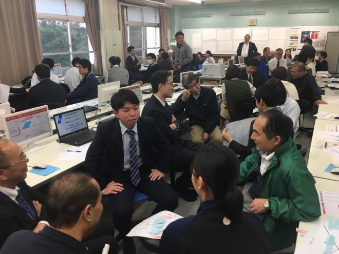 次期学習指導要領がどのような背景から作られているのかについて、実際に携わっている益川准教授から貴重な講演を聞かせていただきました。また、次の世代に必要とされる能力を育成するための手法として、知識構成型ジグソー法を体験し、その内容ををプログラミング的思考に落とし込む活動を体験することができました。「プログラミング教育」と聞くと、どうしてもコーディング(プログラミングコードを記述すること)をイメージしてしまいますが、このような考え方なら、他教科にも普及することができるなというヒントになりました。この研修会後、校内で音楽科教諭が知識構成型ジグソー法を取り入れた授業を実践したり、非常に高い研修成果を得ることができた研修会でした。