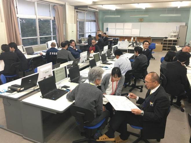 このような能力は、特別な科目だけで身につく「特別なもの」ではなく、すべての科目や学校生活、日常生活での様々な経験や知識を得た上で身に付けられる「論理的思考能力」だといっても過言ではありません。「プログラミング教育」と聞くと、「C言語やJAVAなどのプログラム言語を教えること」、「パソコンを使って何かをすること」と勘違いされ、「私の科目には関係ない」と敬遠されてしまいます。しかし、論路的能力の育成にはどの科目も必要不可欠です。今回の研修のアンケートの中に、「自分の科目でもできそう」というものがありました。そのことに気がついてもらえただけで、実りある研修会になったと思います。今後も研修を通じて、多くの先生方に「自分の科目でもできそう」な部分を1つでも多く見つけてもらい、実際に授業で実施してもらいながら、学校全体で取り組んでいきたいと考えています。
