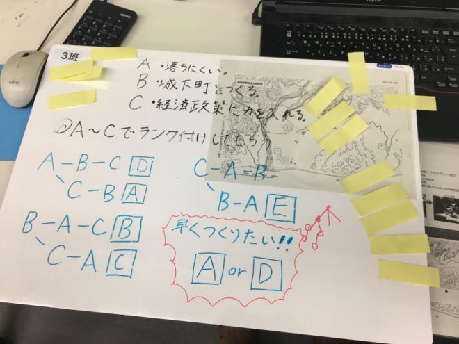 「どこに城を建てるのか」を地図を見て考えるジグソー体験から出てきた答えをプログラミング的思考でまとめる
