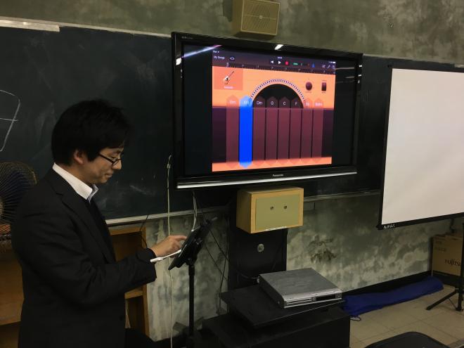 最後に本校音楽科教諭、長谷部先生よりiPadのアプリGarageBandの実演