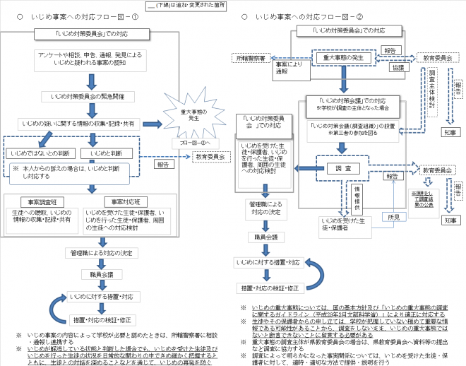 - 犯罪行為として取り扱われるべきいじめについては、県教育委員会及び所轄警察署等と連携して対処します。
