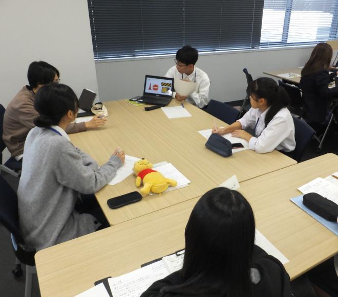 事例を通して、「分かりやすく効果的に伝える」話し方や「授業を作る際に意識すること」について学びました。実際に、「SNS」を題材に発表とフィードバックをグループ活動で行い、相手に「伝わる」ことの難しさを体験するとともに、良い発表をするためにはどうしたらよいかを考える時間となりました。
