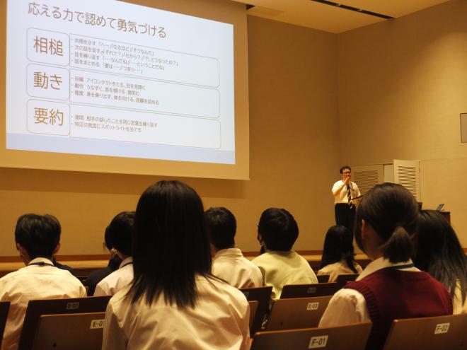 コミュニケーションにおいて大切なことや、コミュニケーション能力を高めるためにできることを考え、コミュニケーション能力の基本について理解を深めました。また、グループ協議を通し、「相手に伝える」ことの難しさを体験するとともに、日々の中で意識するべきことについて学びました。