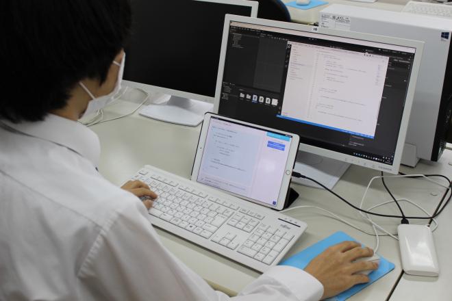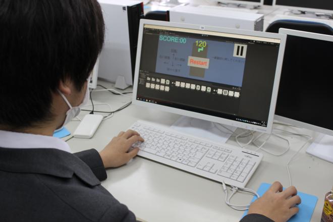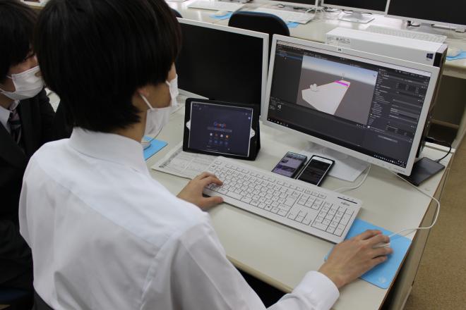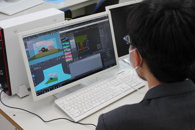 中学校では運動部に所属していた生徒も多いですが、ゲーム作成や3次元アニメーションに興味があり、自分の想像したゲームやアニメーションの制作に日々頑張っています。