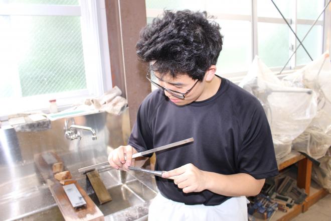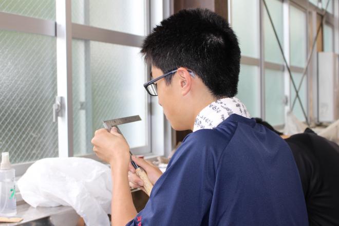 令和6年6月6日(木曜日)建築研究部が、鉋(かんな)とたたき鑿(のみ)を研いでいました。