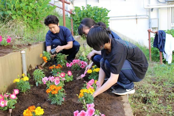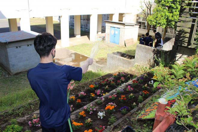 さいごに水を撒いて完成です。3年生は、後輩への引継ぎは順調とのことでした。