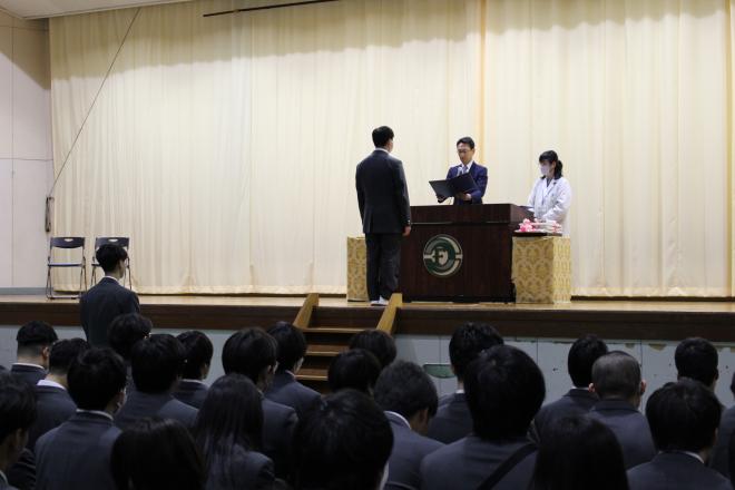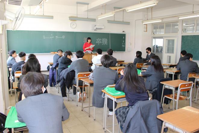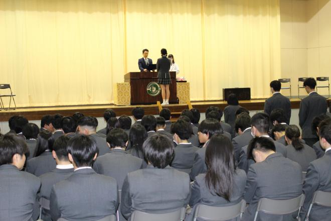 令和7年2月28日(金曜日)明日の卒業式に向けて、3年生が予行練習をしています。