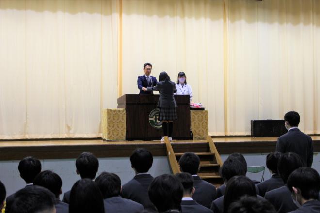 緑学年の晴れ舞台です。クラスごとに、担任から卒業証書を授与されました。