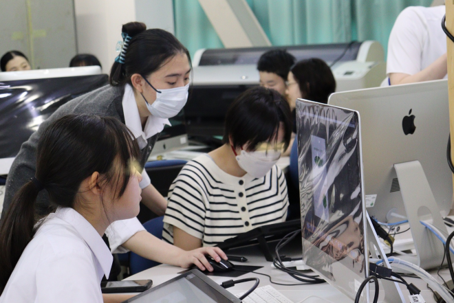 都市土木系の生徒は、公務員試験のための勉強中でした。総合デザイン系では進学のためのポートフォリオを作成しています。