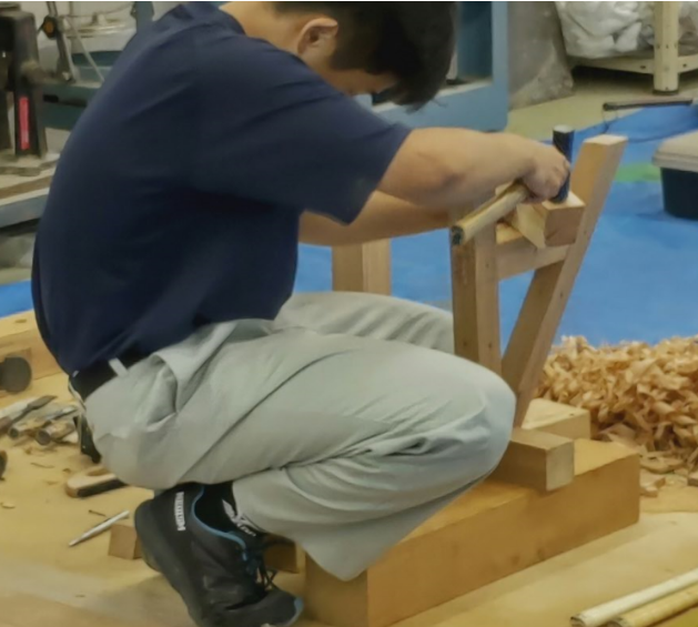 左が、課題の組み立て作業です。右は、のみを使った作業です。
