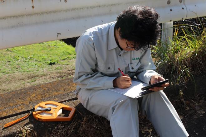 測量という土地の面積を測定する授業です。測定結果を紙にまとめています。