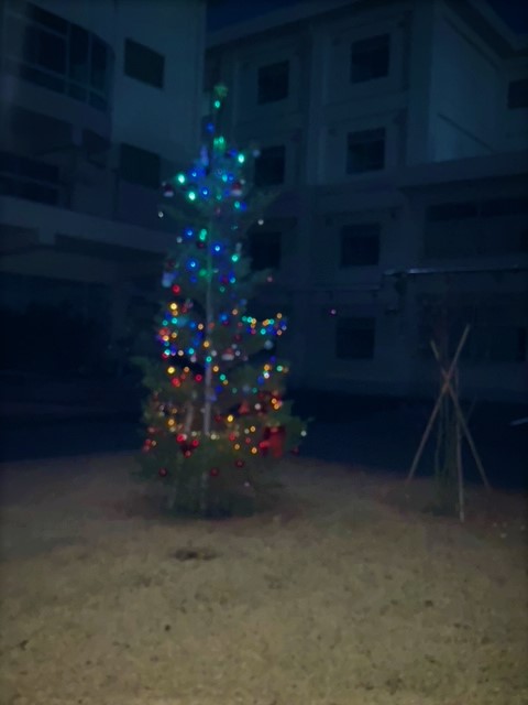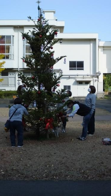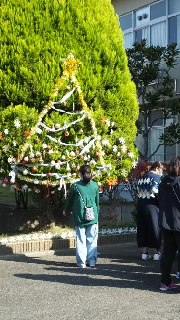 環境委員会では、正門横と中庭の木にクリスマスの装飾をいたしました。11月27日夜から点灯し、晩秋から冬の夜空に華やかさを添えています。