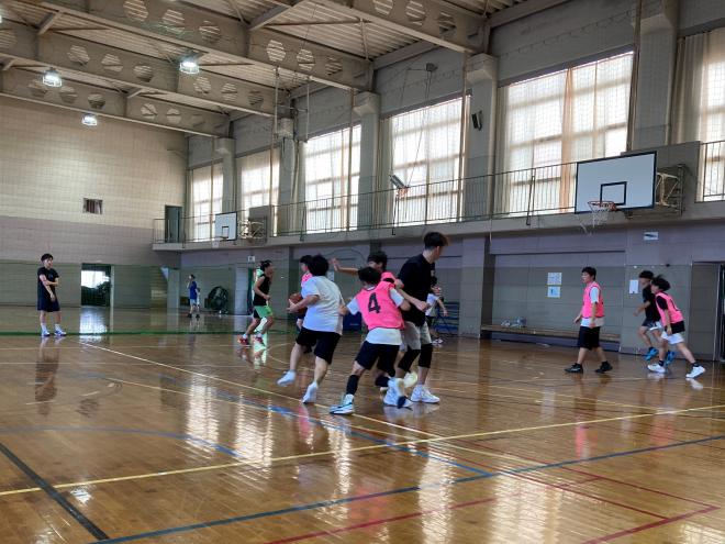 今日は滋賀レイクスの宮本一樹選手が来てくださいました。センターとガードで分かれた練習では、自分たちよりも身長の高い選手とあたった時の攻め方や守り方を指導してくださいました。宮本選手自らがボールを持ち、やりながら指導してくださることもありました。