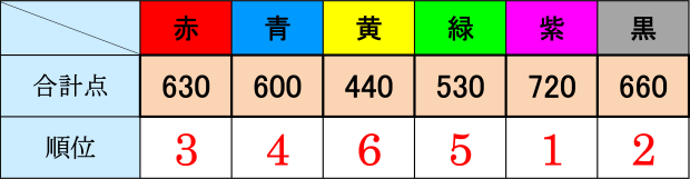 総合優勝は紫団、2位は黒団、3位は赤団となりました。