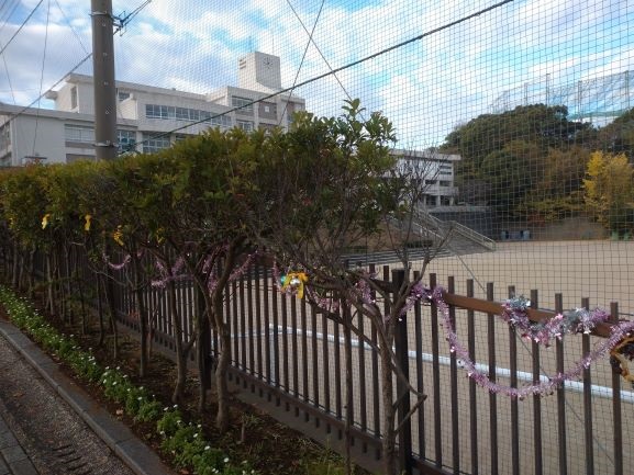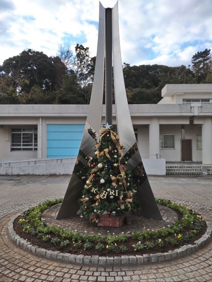現在本校は2学期の期末試験中です。正門を越えた坂のスロープにはクリスマスの飾りが、坂を登り切った希望の塔前にはクリスマスツリーが、毎朝生徒を出迎えてくれています。