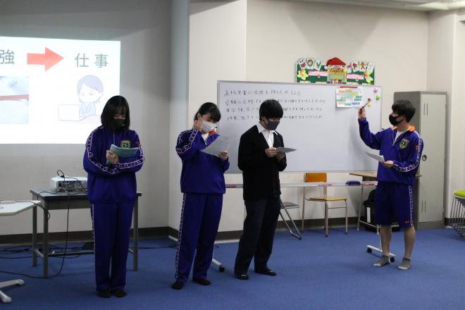 3年生の英語の授業でプレゼンを行いました。10グループに分かれ、各グループが「効果的な勉強法」について調べ、英語で発表・共有しました。今回の発表を夏休みの勉強に生かしてくれることを期待します。